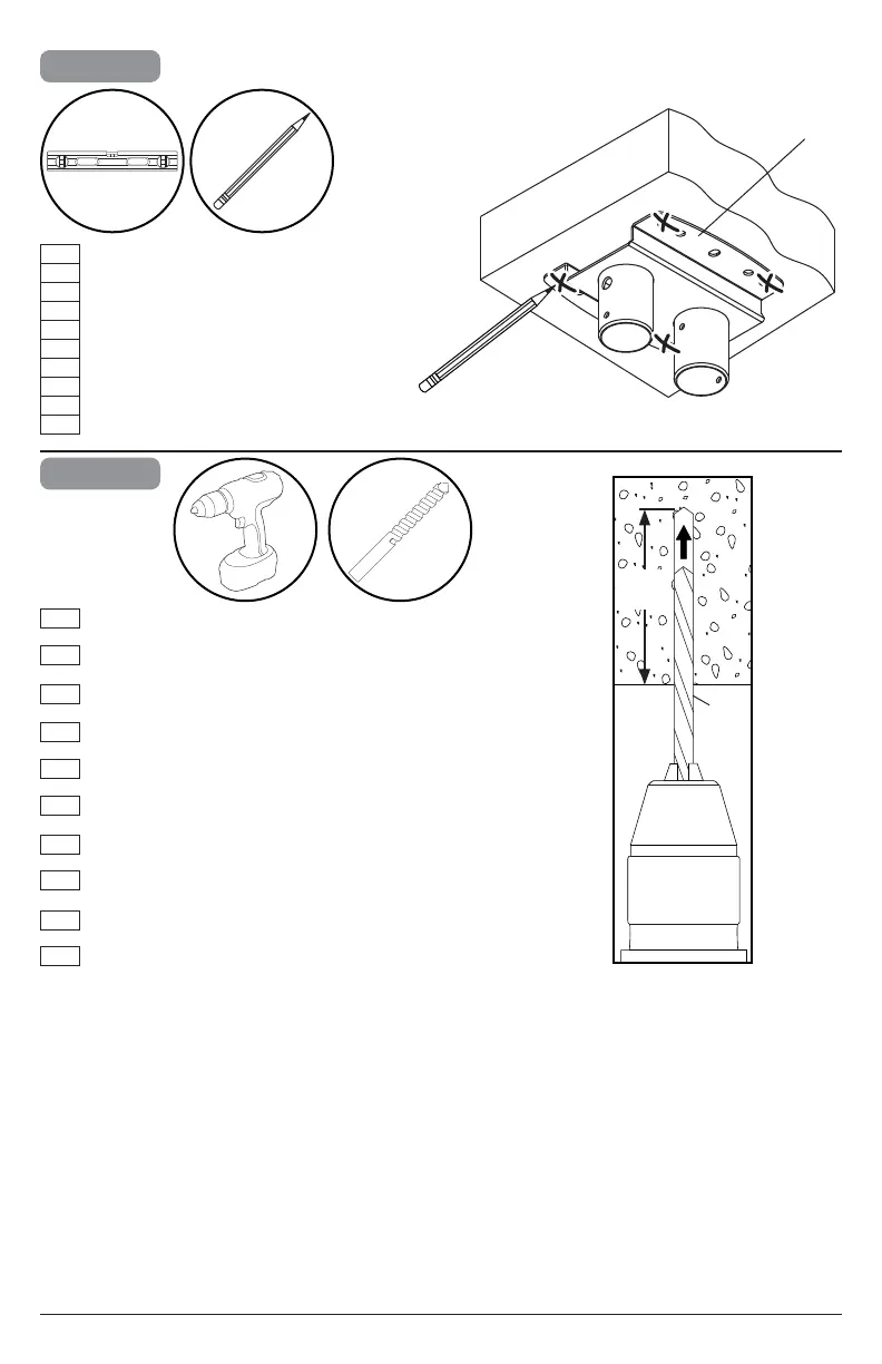 Taladre los agujeros de montaje en la superfi cie de apoyo; se