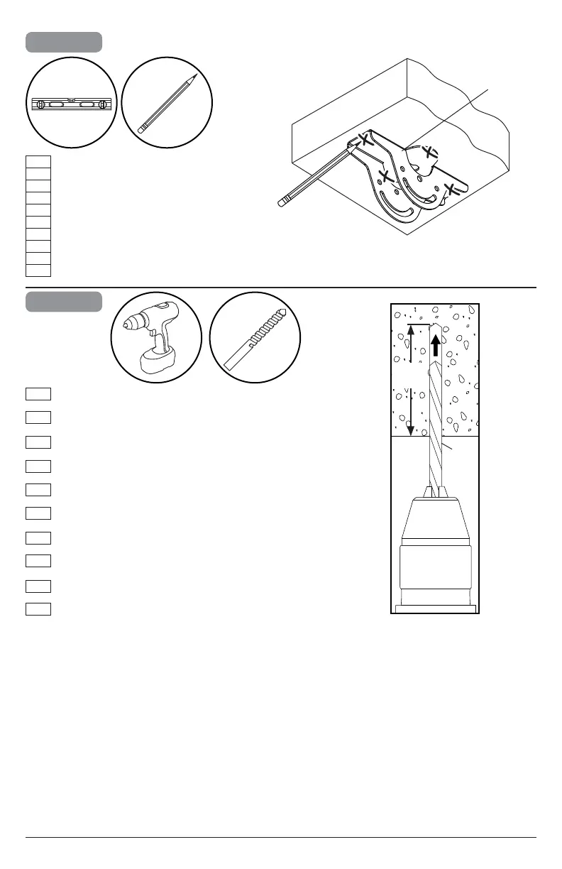 Bohren Sie Montagelöcher in die Montagefl äche; Mindesttiefe