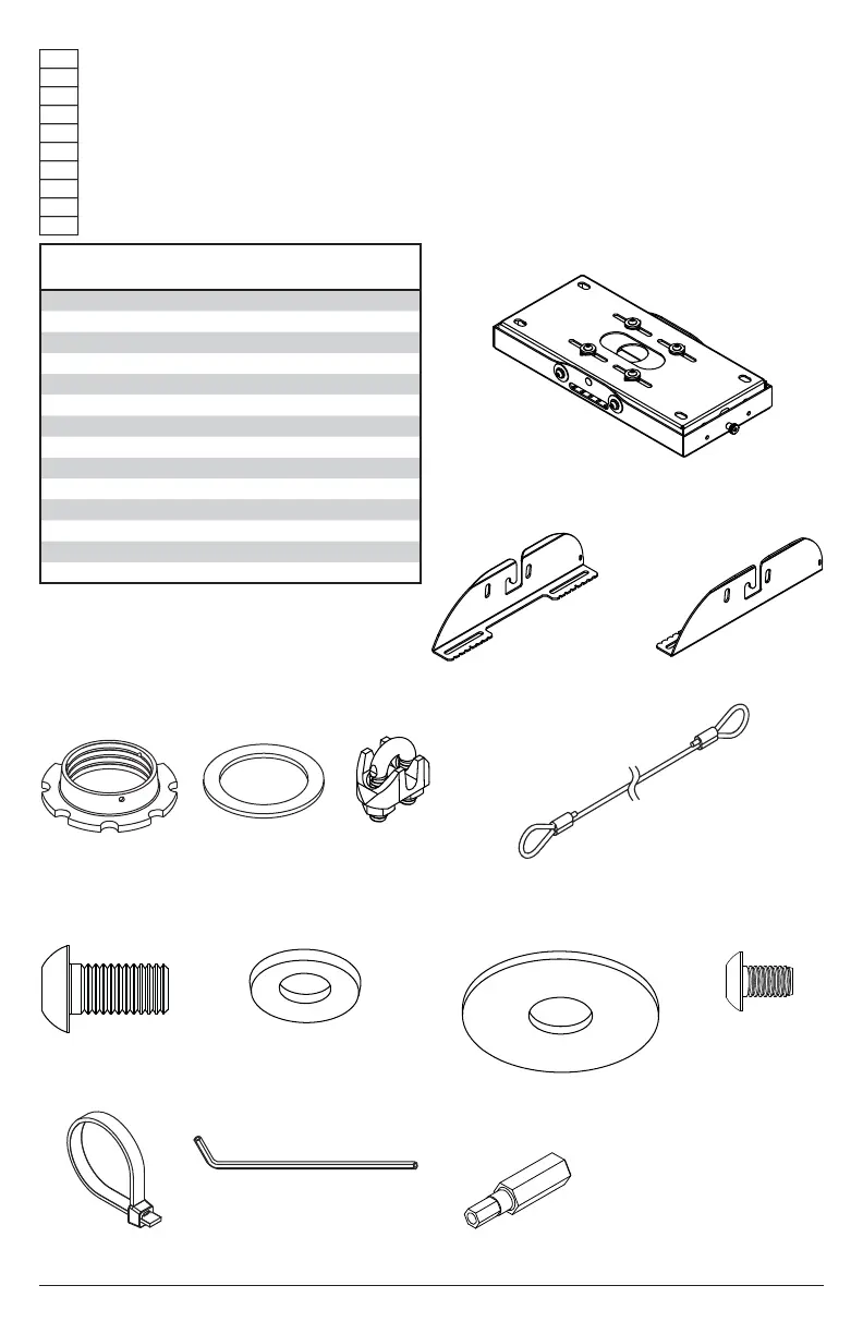 Onderdelen (hoort u zich ervan te overtuigen dat u alle onderdelen hebt, die hieronder te zien zijn).