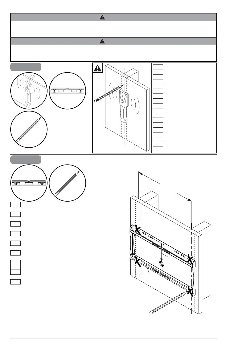 verifi que se as traves ou vigas têm um tamanho nominal mínimo de 50,8 mm x 101,6 mm. Não instale em pai-