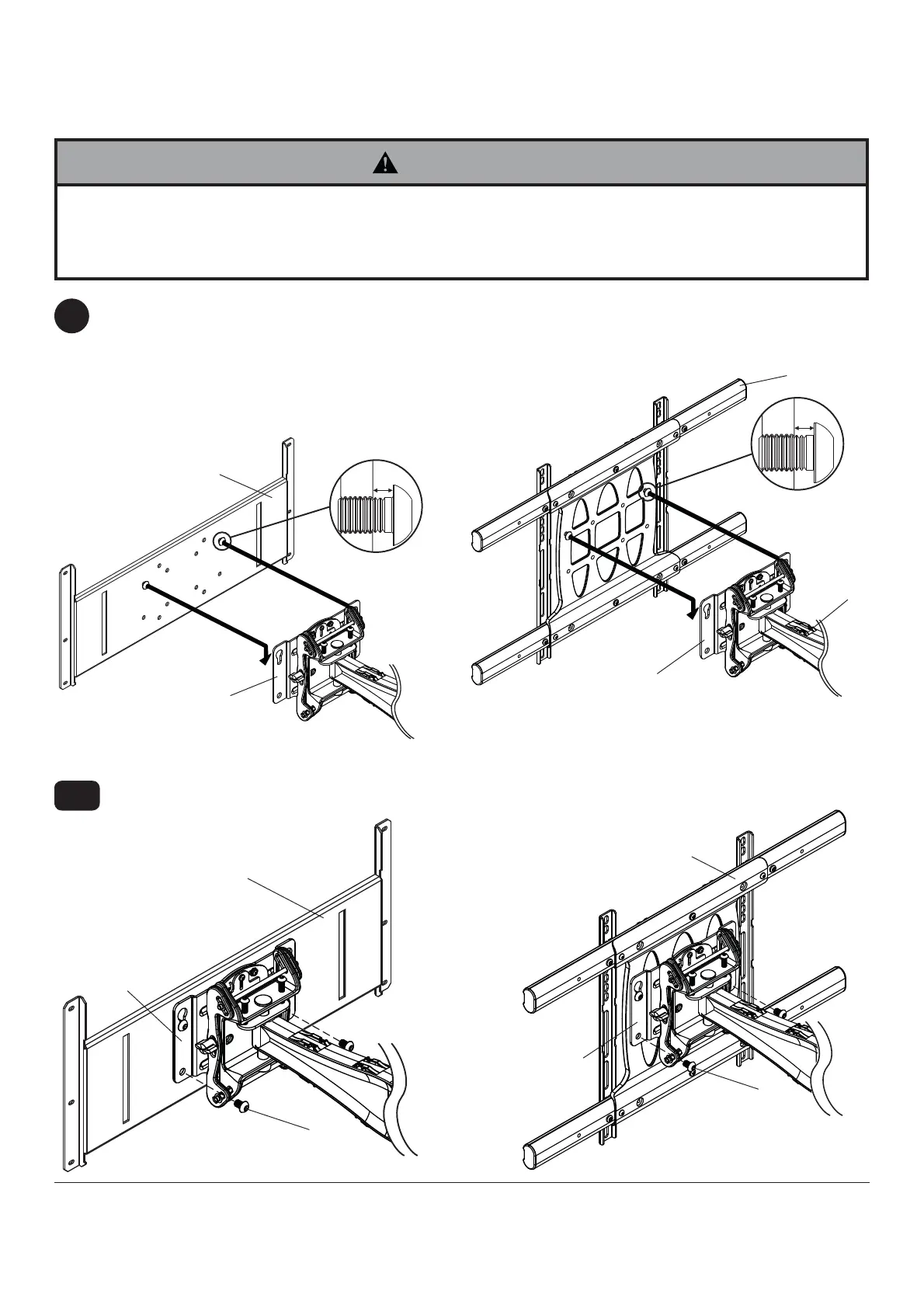 • Do not tighten screws with excessive force. Overtightening can cause damage to mount. Tighten M10 x 15mm