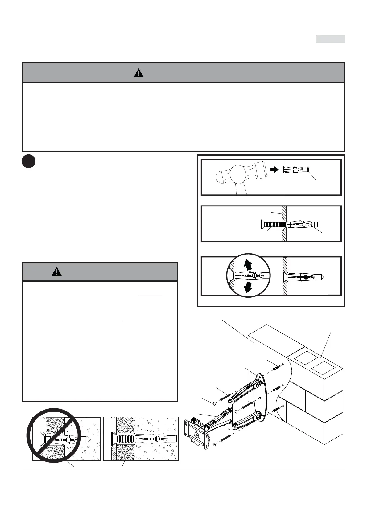 de mortero! Asegúrese de instalar el soporte en una parte sólida del bloque, generalmente a un mínimo de 1" (25mm) del costado