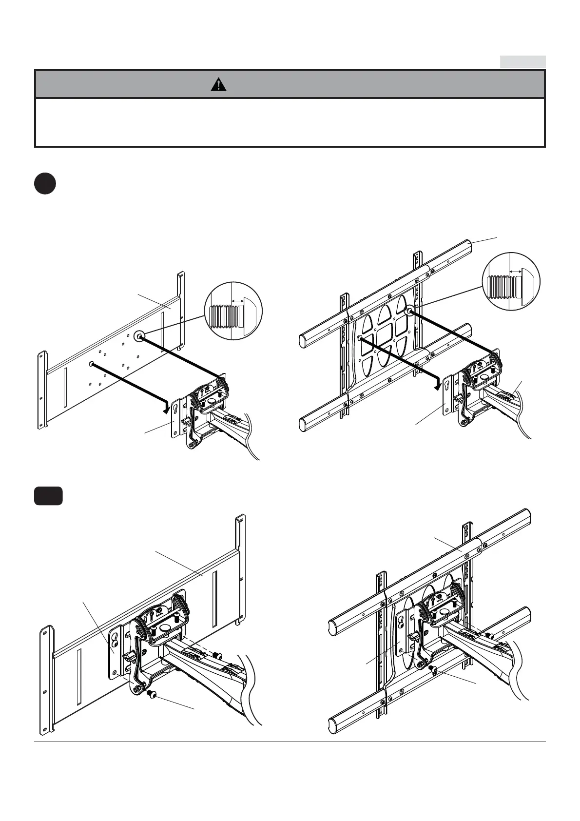• No apriete los tornillos con fuerza excesiva. Apretarlos en exceso puede dañar el soporte. Apriete los tornillos M10 x 15mm (E) a