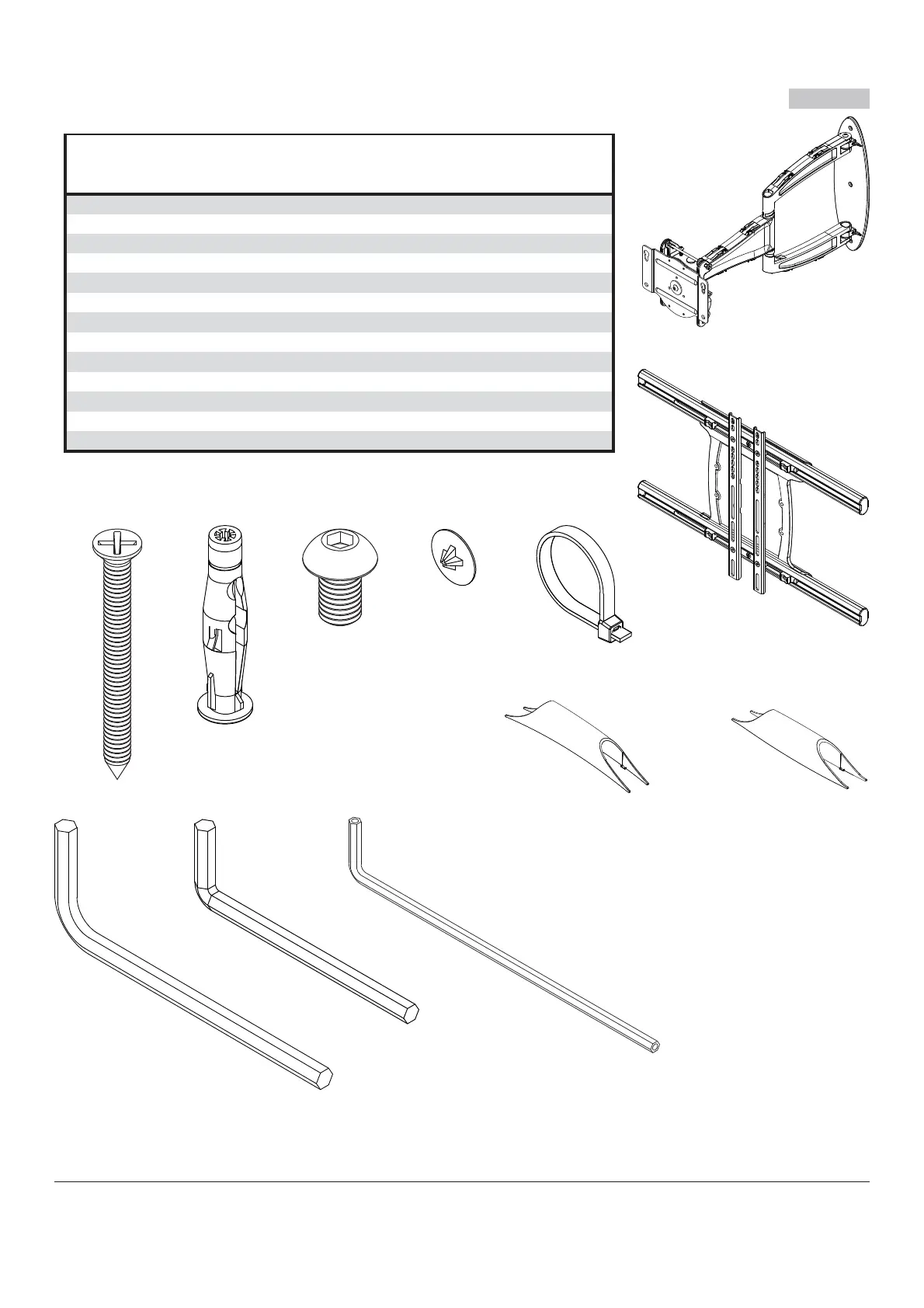 Avant de commencer, s'assurer que toutes les pièces indiquées sont incluses avec le produit.
