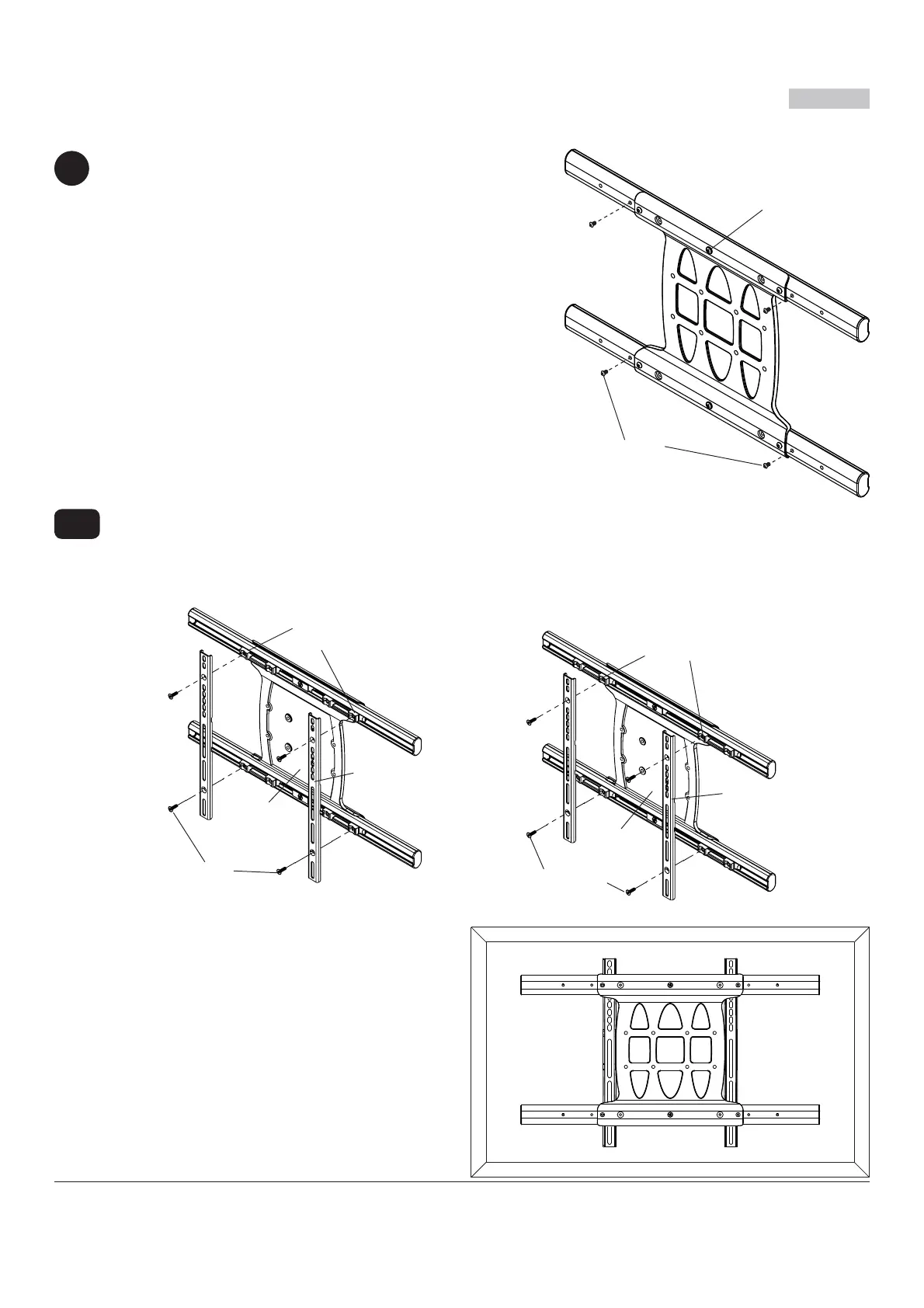 Bringen Sie die vie 1/4-20 Gewindeschneidschraube wieder an, um die Bildschirmhalterungen wie in Abbildung