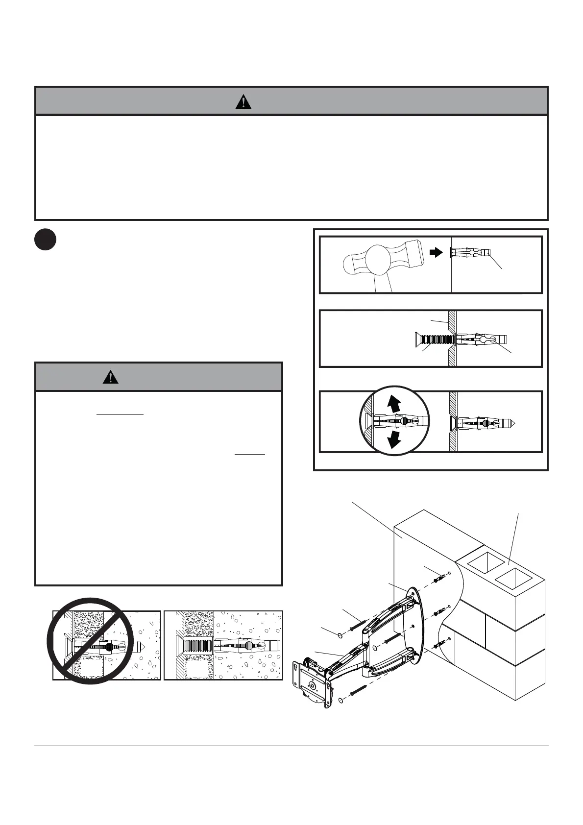 • When installing Peerless wall mounts on cinder block, verify that you have a minimum of 1-3/8" (35mm) of actual
