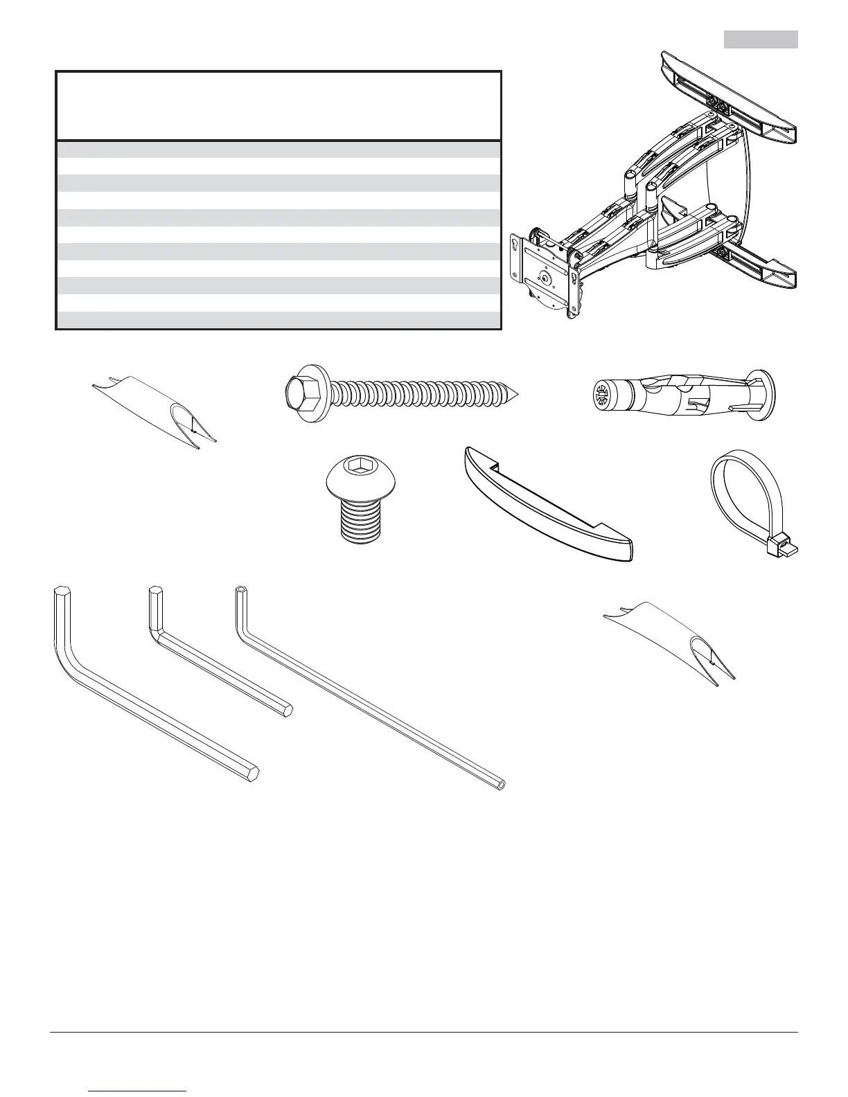Avant de commencer, s'assurer que toutes les pièces indiquées sont incluses avec le produit.