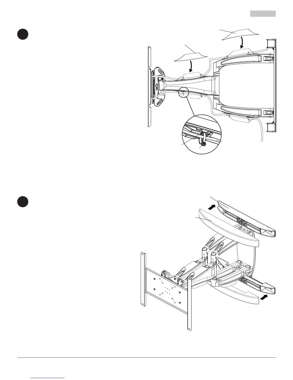 attaches de câble (G) dans les fentes du bras (A)