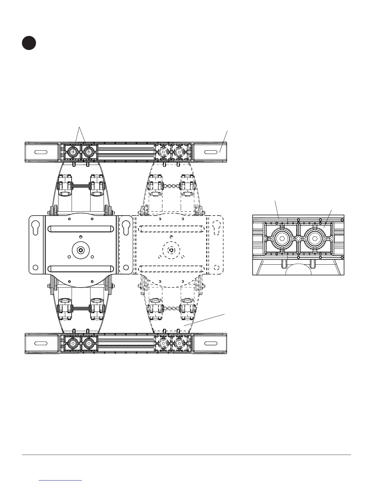 bevels (dots) of slide plate with bevels (dots) of wall plate rails as shown in detail 1 then retighten 1/4-20 x 17mm