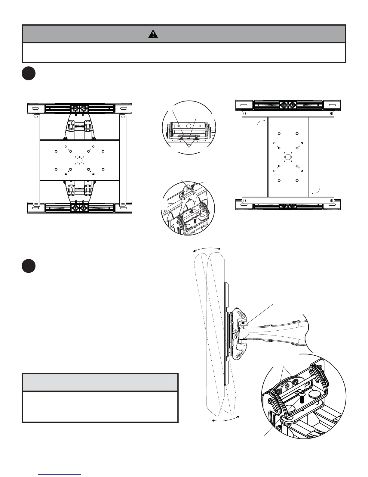 • M10 x 15mm screws (E) must be securly tightened before changing orientation of wall arm assembly (A). Failure to