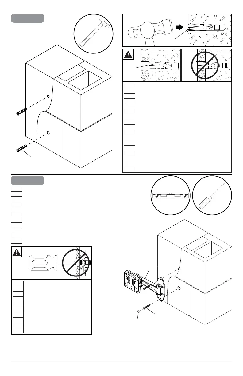 Insert anchor thru drywall (a) fl ush to concrete (b).