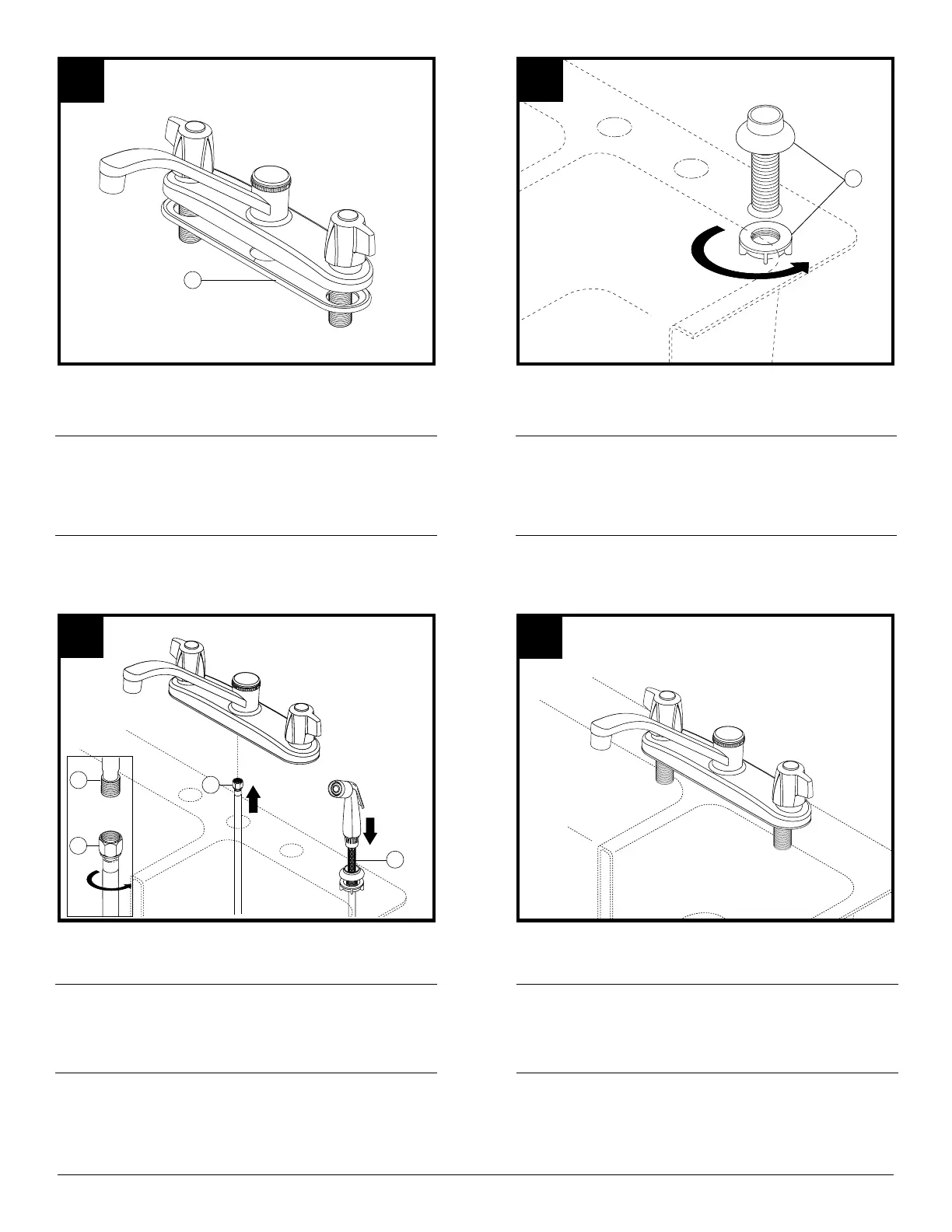 centerhole of sink. Thread the hose nut (2) onto the faucet outlet (3).