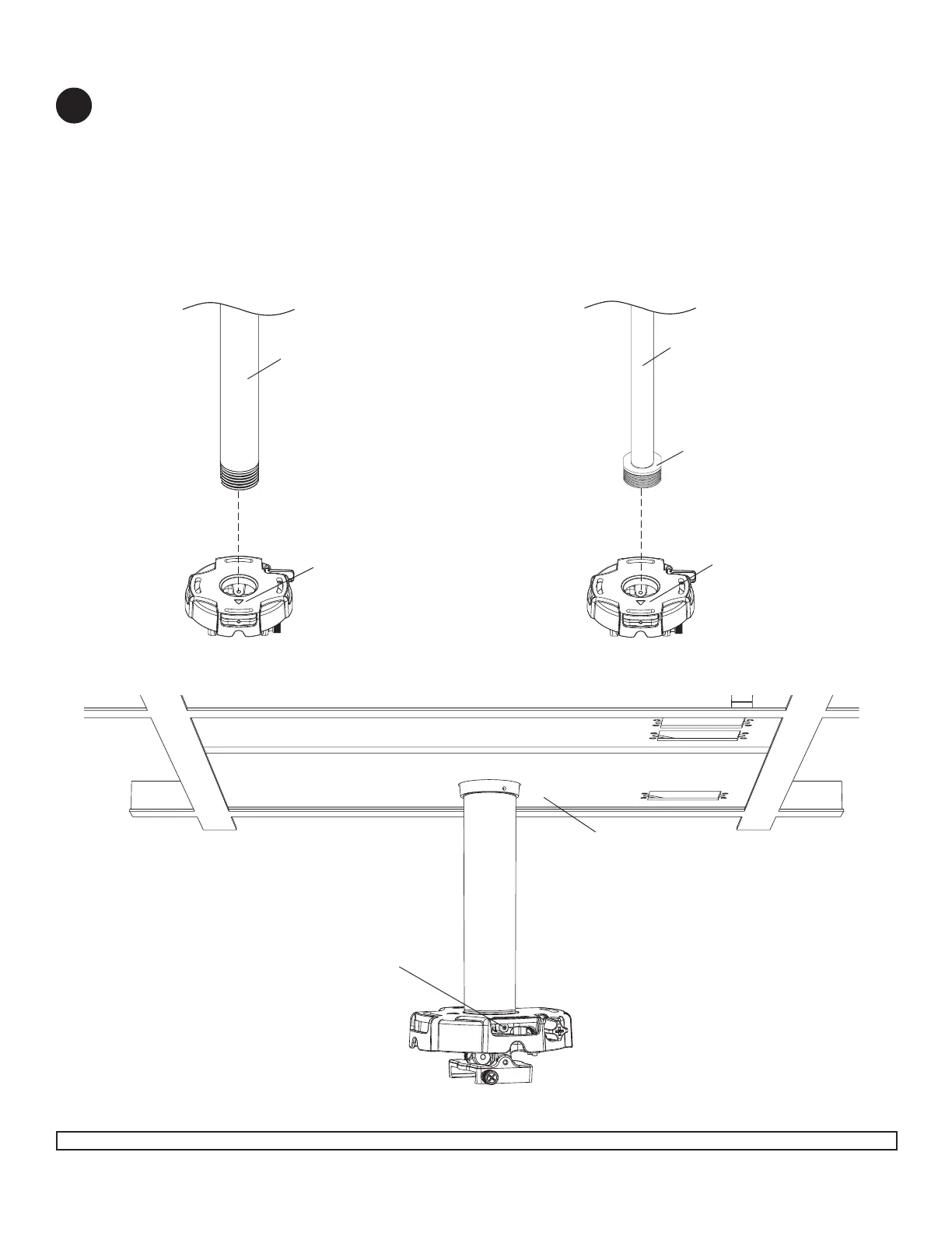 Screw projector mount assembly (A) onto extension column as shown in figure 1.1.