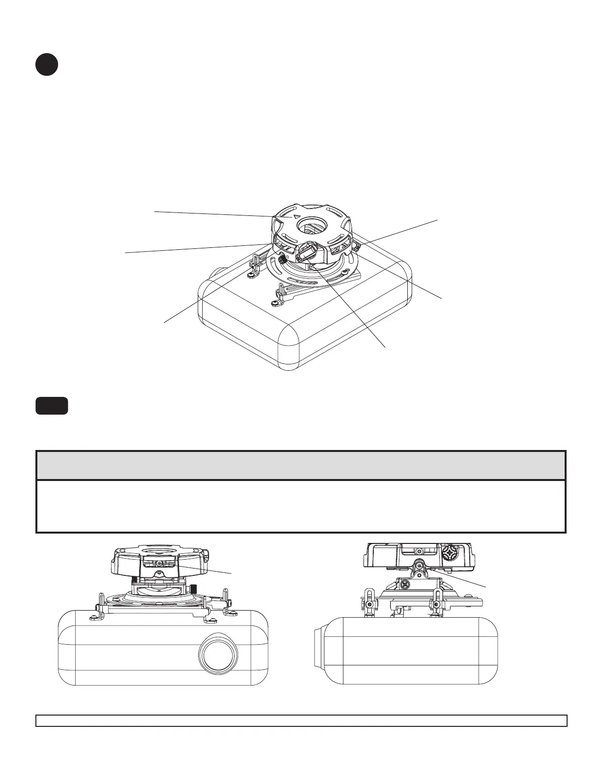 indicated below until projector mount can be rotated. Rotate mount to desired position and retighten screw.