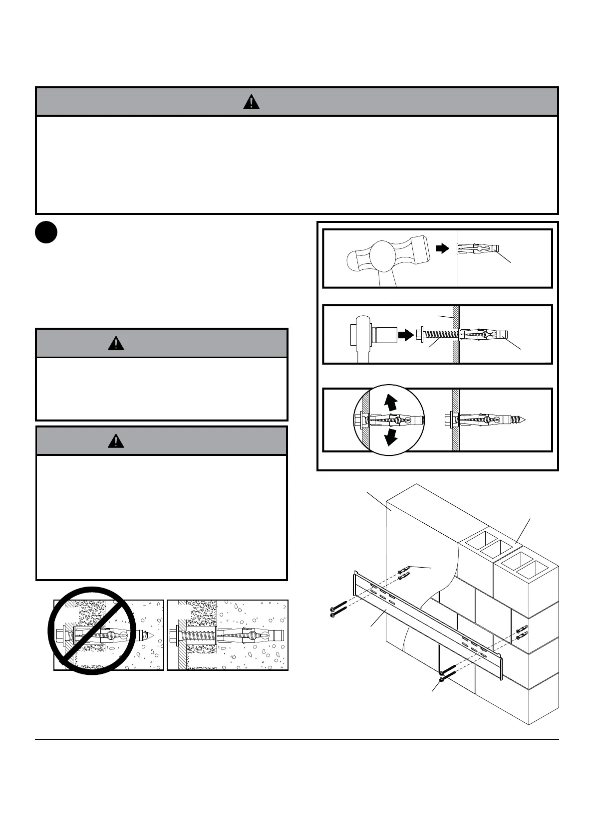 dass die Anbringung an einem massiven Teil des Blocks erfolgt, im Allgemeinen mindestens 25 mm (1 Zoll) von der Blockseite entfernt. Die