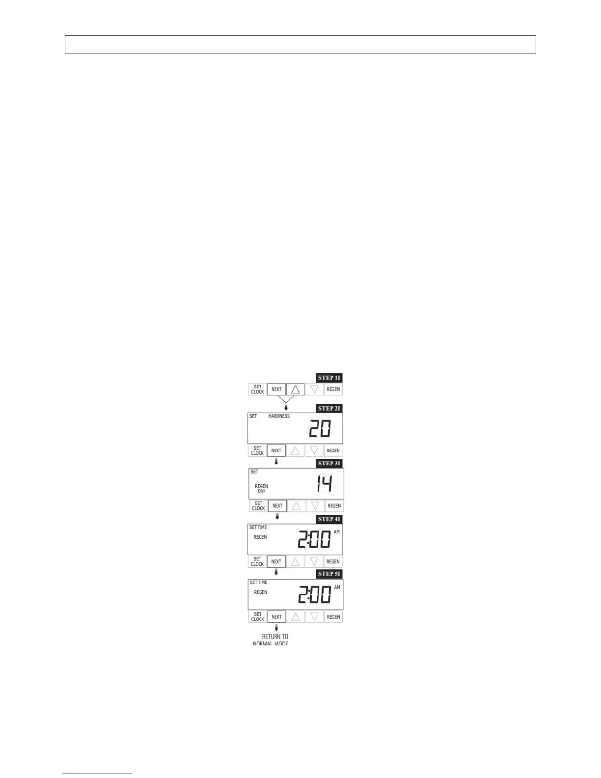 STEP 4I – Next Regeneration Time (hour): Set the hour of day for regeneration using down or up arrow