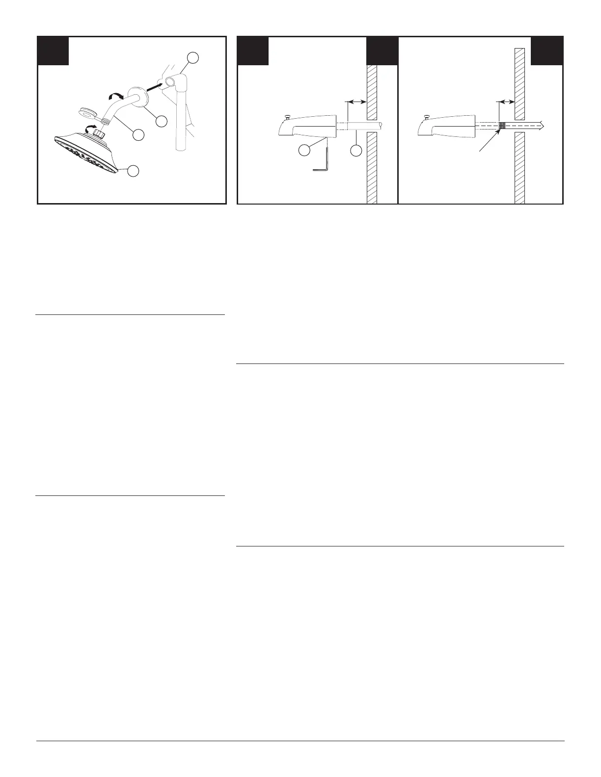 Apply plumber tape to nipple threads and hand tighten tub spout until spout is rmly against nished