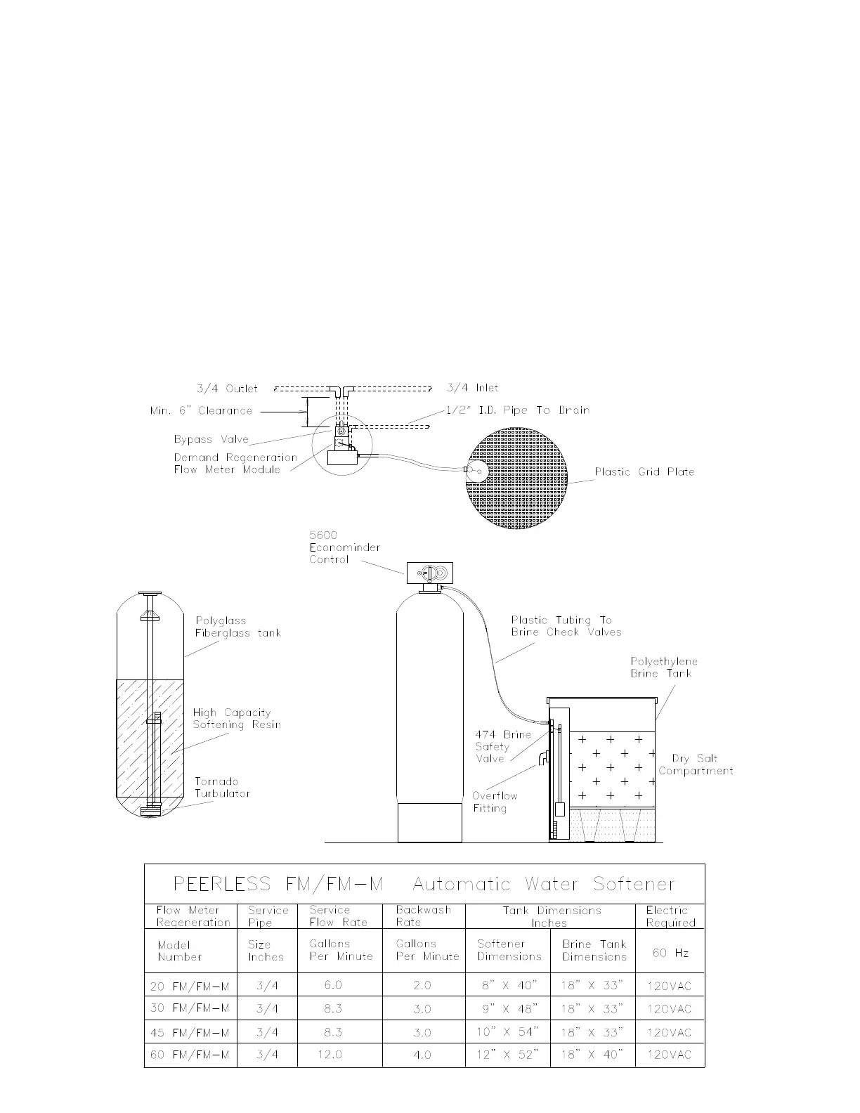 installed below the bottom of the unit. The drain and brine lines should NOT be installed with tubing that can