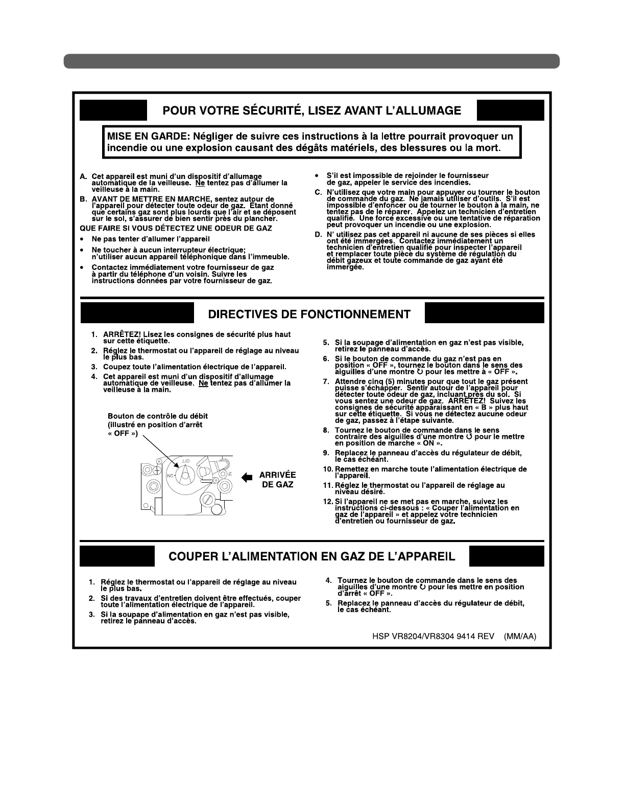 Figure 7.6: Operating Instructions, Residio Gas Valve