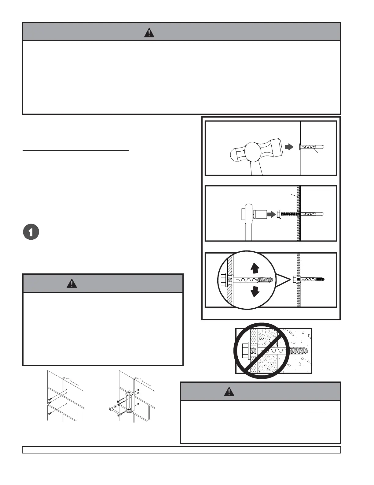 • Make sure that mounting screws are anchored into the