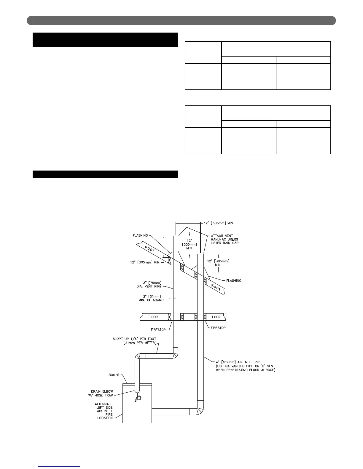 (305 mm) above expected snow lines. Vent pipe must