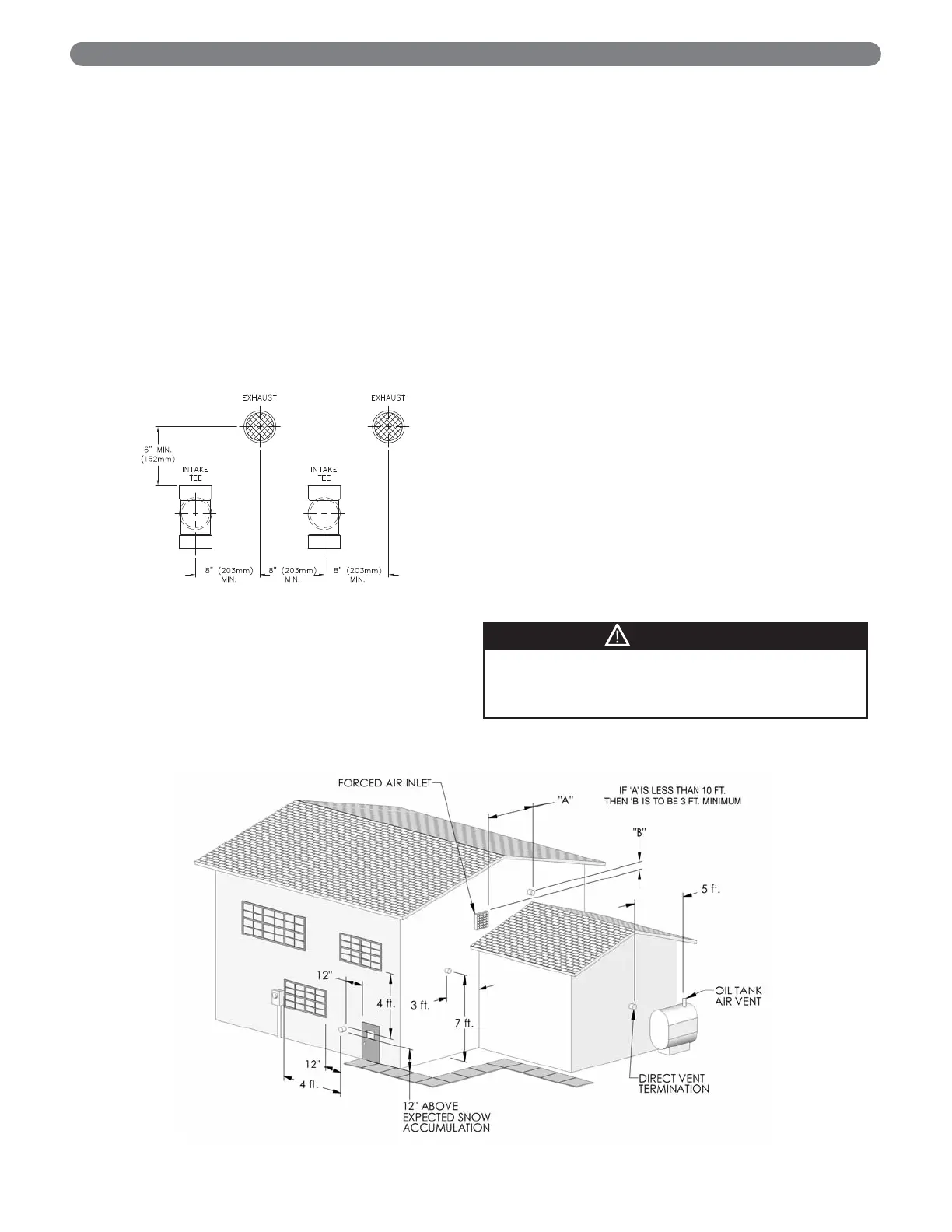 between the exhaust and air inlet is 6". See Figure