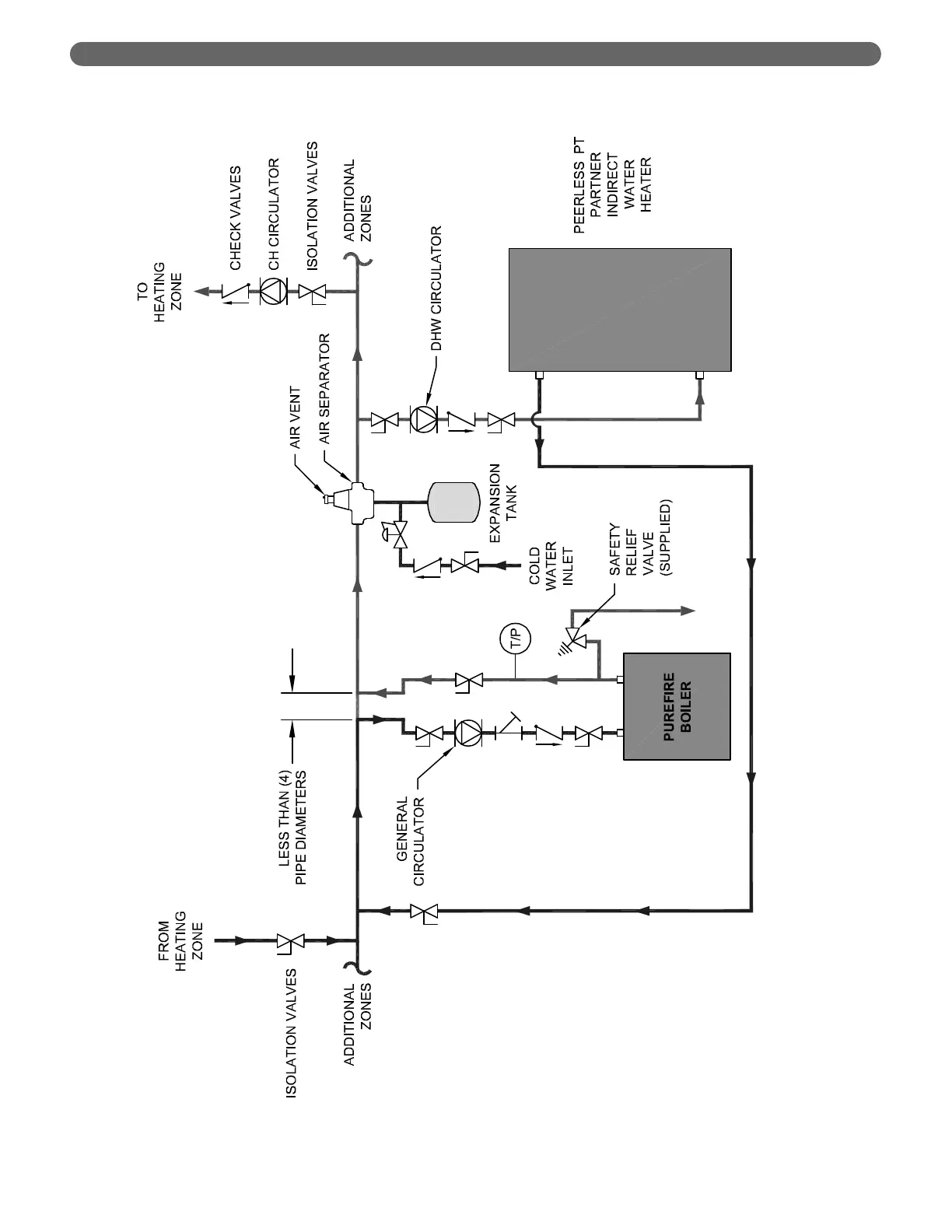 Figure 4.5: Recommended Piping – One Boiler, Primary/Secondary with Two Zones (Zone Circulator)