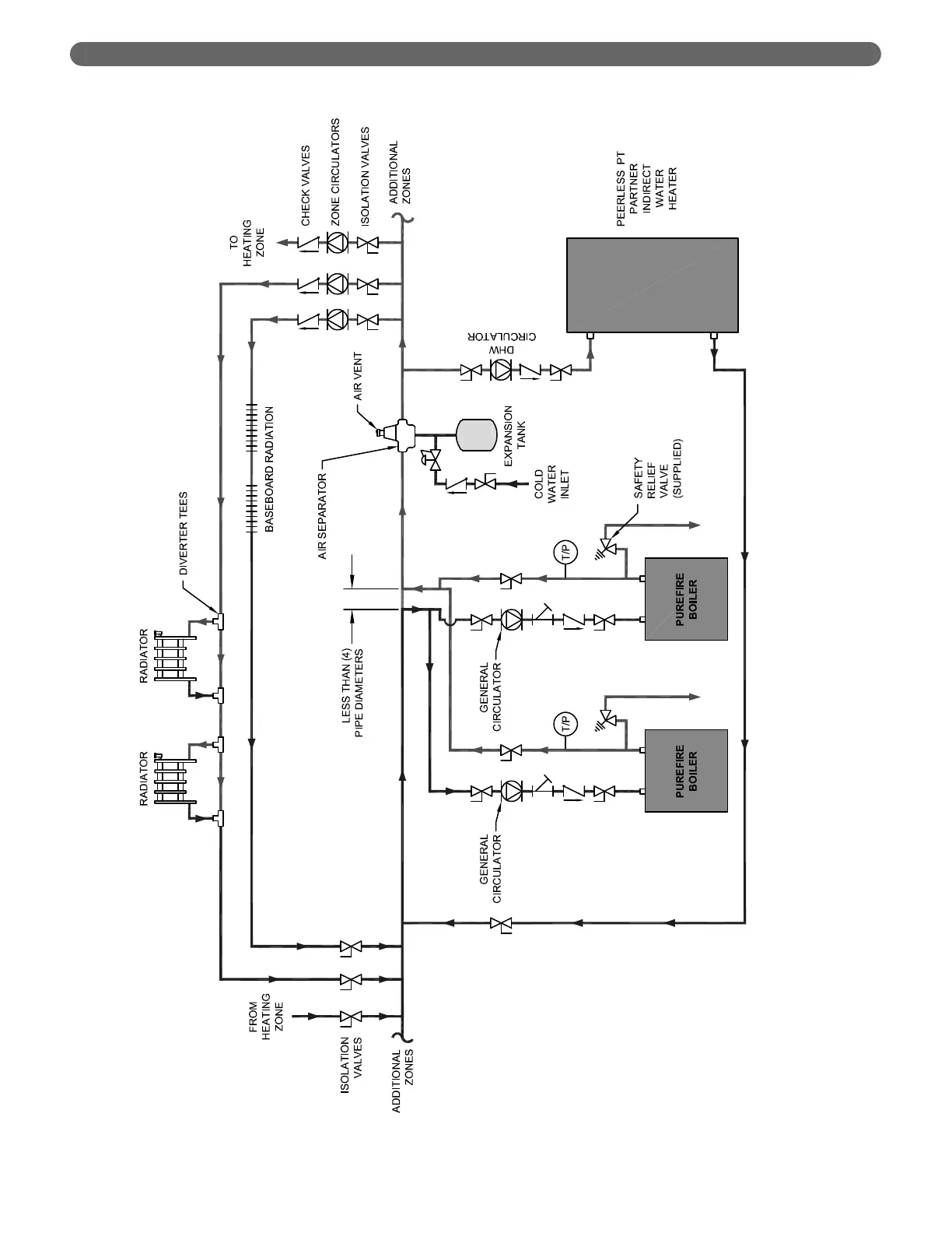 Figure 4.7: Two Boilers, Primary/Secondary with Four Zones (Zone Circulator)