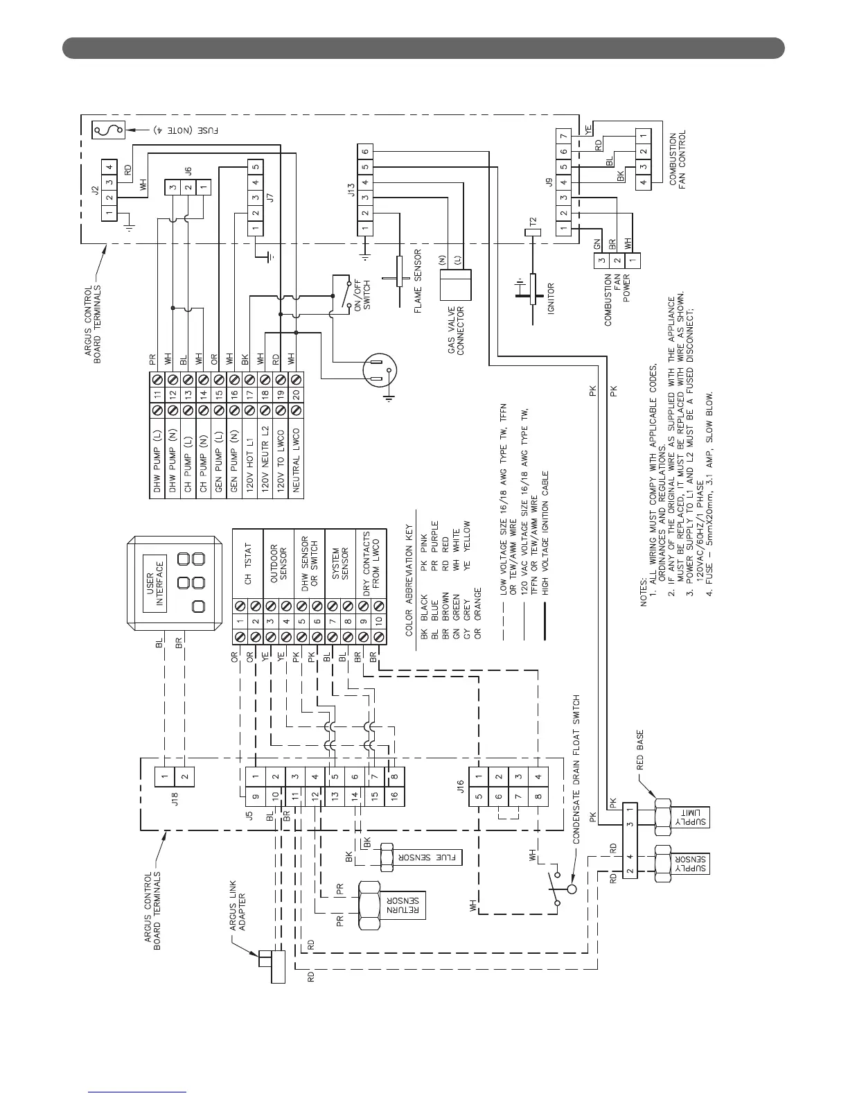 Figure 7.5: Internal Wiring Schematic for PF-50, PF-80, PF-110 & PF-140 boilers.