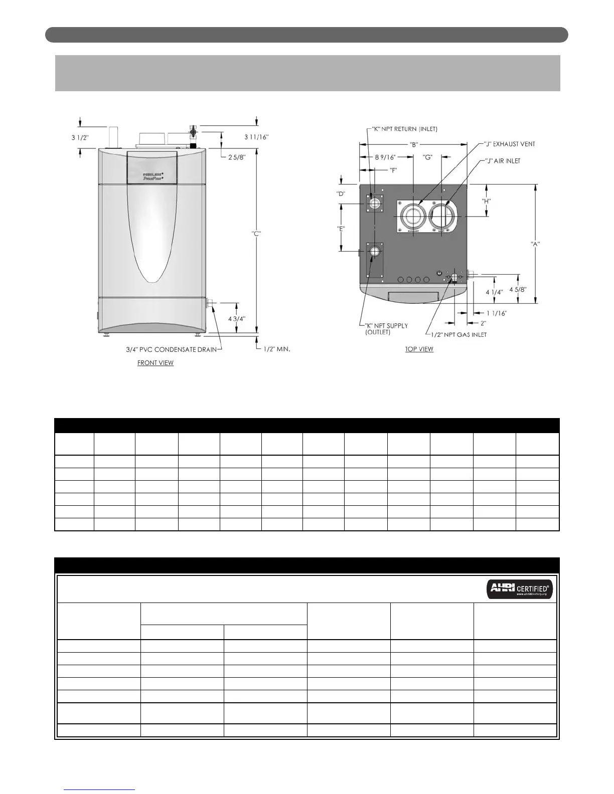 BOILER DIMENSIONS & RATINGS