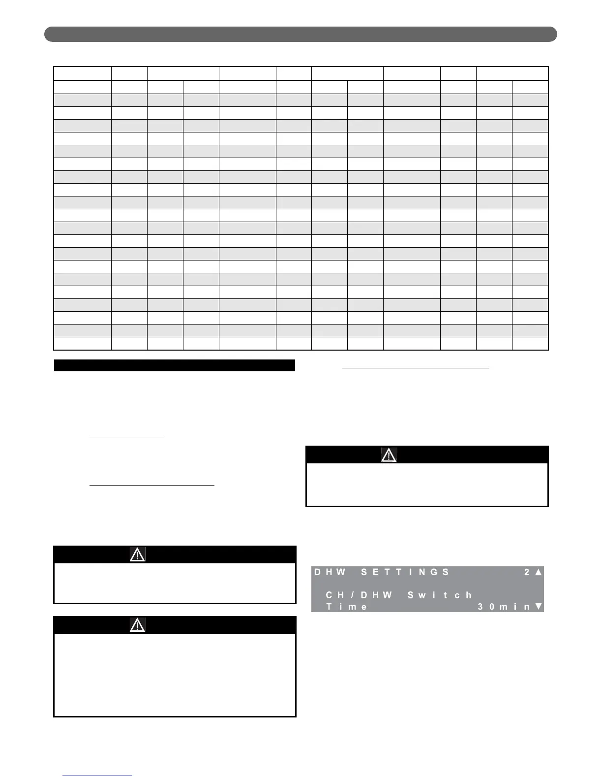 The CH/DHW Switch Time indicates the maximum