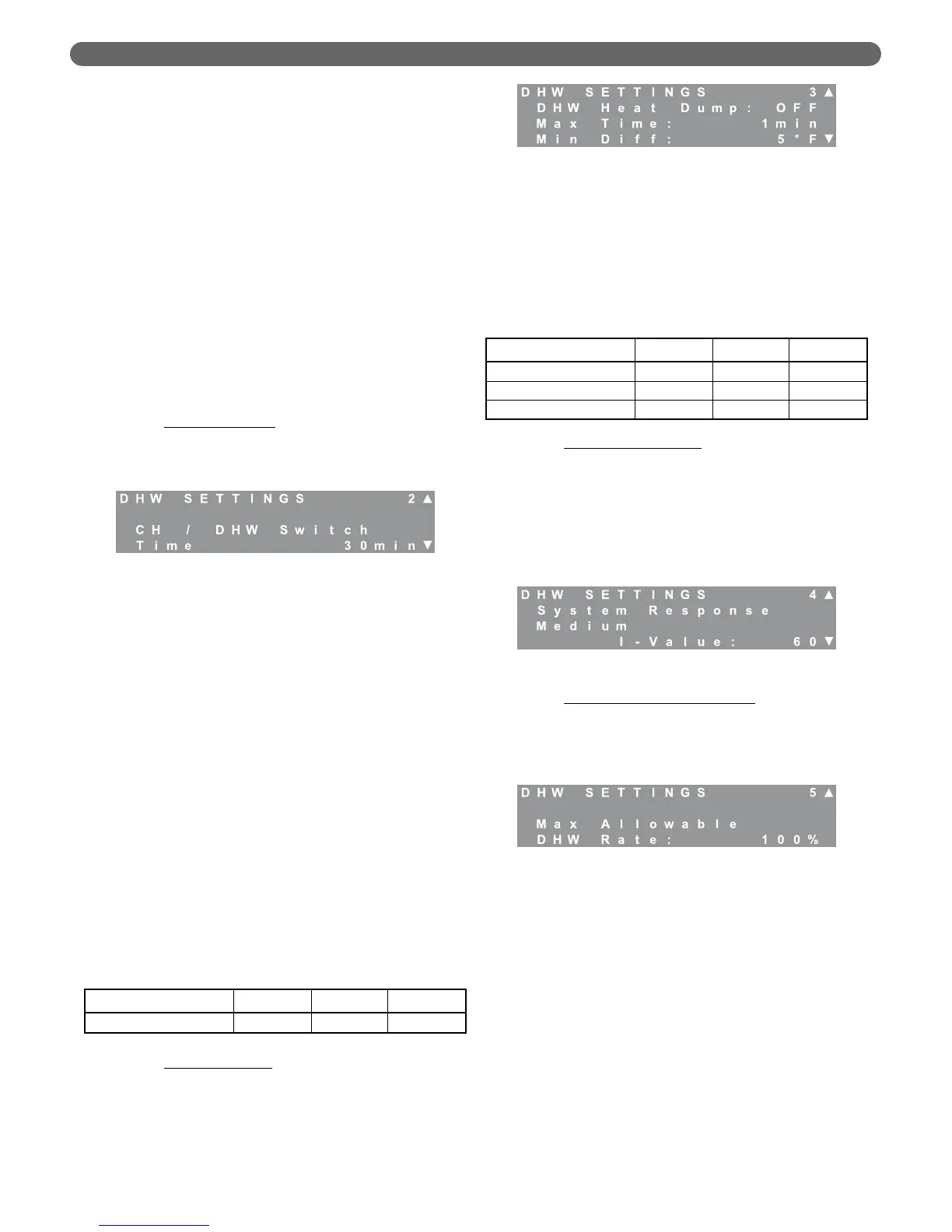 CH/DHW Switch Time 5 minutes 30 minutes 60 minutes