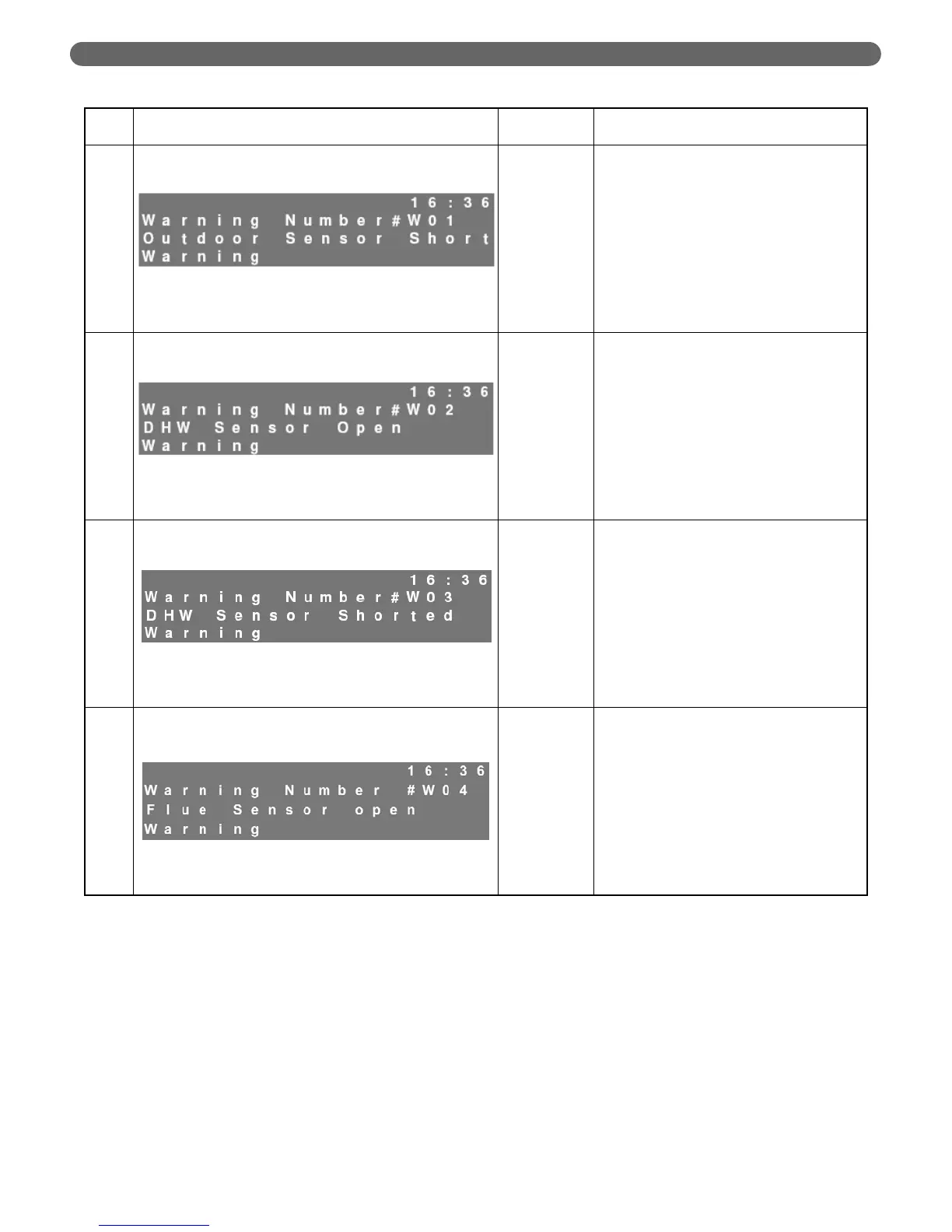 Table 10.3: Control Board Warning Error Codes