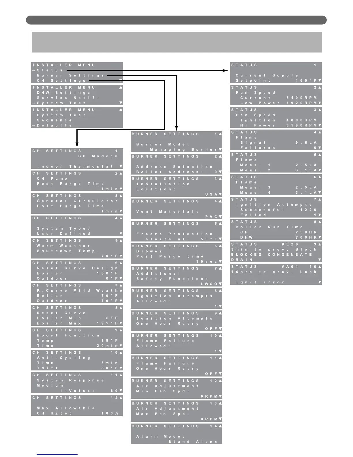 PEERLESS PUREFIRE PF-850 - APPENDIX D. INSTALLER MENU STRUCTURE; INSTALLER MENU
