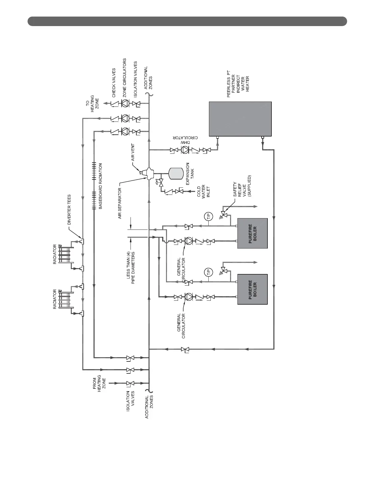 Figure 4.7: Two Boilers, Primary/Secondary with Four Zones (Zone Circulator)