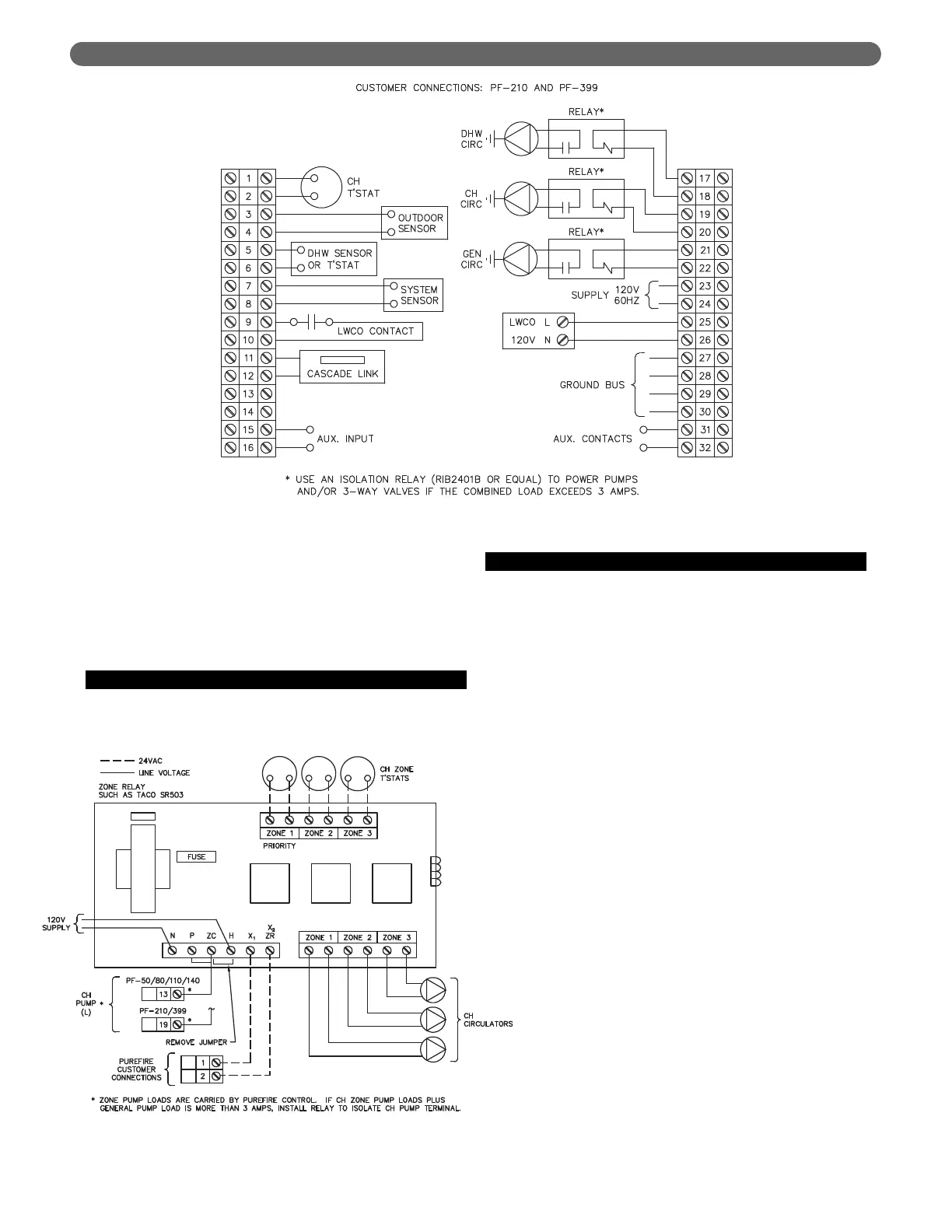 Wiring for a typical circulator zone relay is shown in