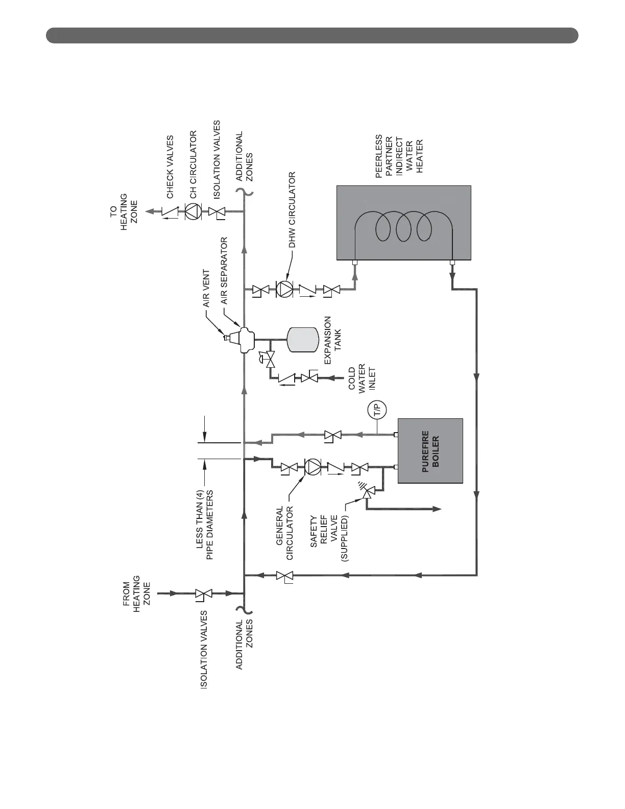 Figure 4.5: Recommended Piping – One Boiler, Primary/Secondary with Two Zones (Zone Circulator)