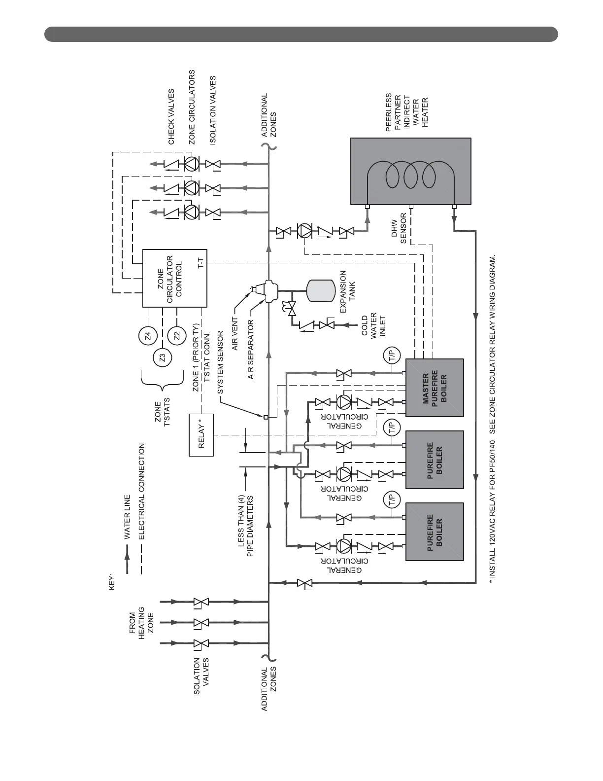 Figure 8.9: Multiple Boiler (Cascade) Piping / Electrical Connections for Systems with Zone Circulators