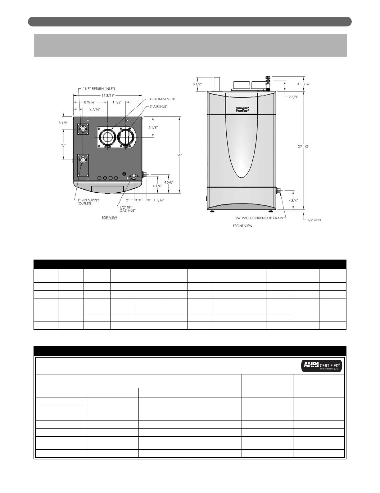 BOILER DIMENSIONS & RATINGS