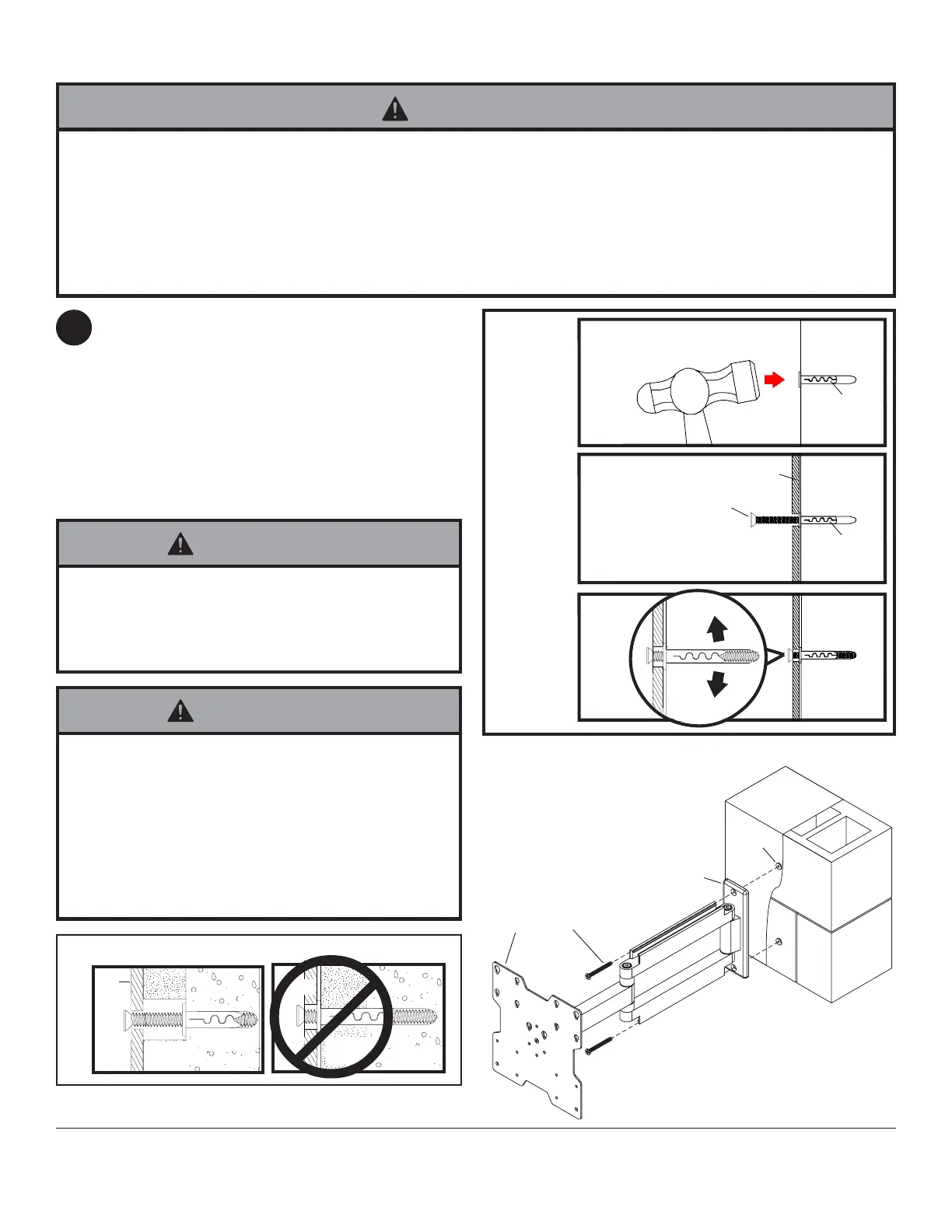 • When installing Peerless wall mounts on cinder block, verify that you have a minimum of 1-3/8" of actual concrete
