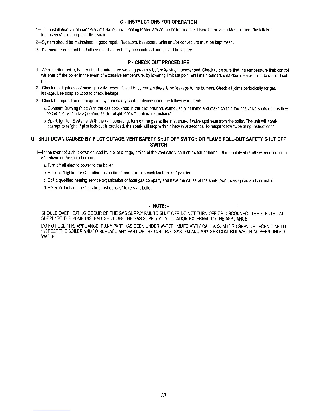 1--Afterstartingboiler,becertainall controlsareworkingproperlybeforeleavingit unattended,Checkto besure thatthe temperaturelimitcontrol