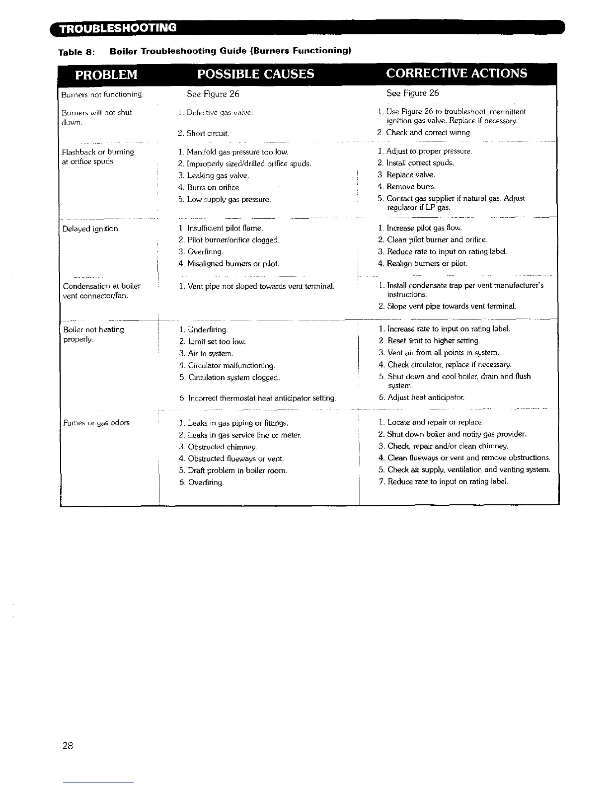 Table 8: Boiler Troubleshooting Guide (Burners Functioning)