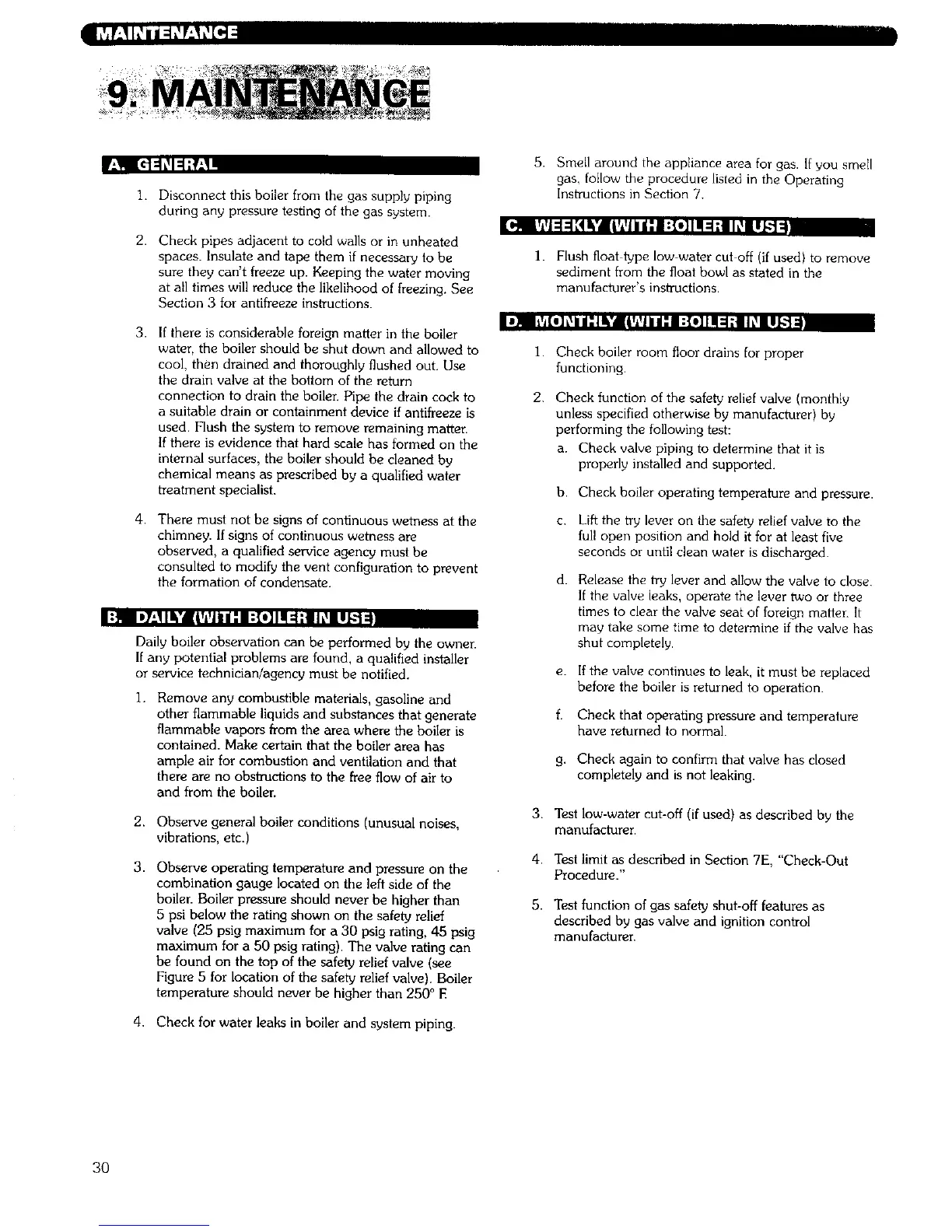 4. Check for water leaks in boiler and system piping.