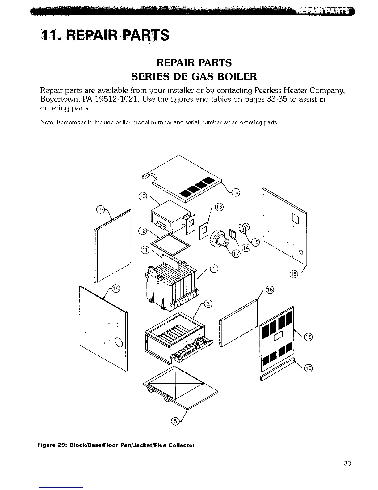 Repair parts are available from your installer or by contacting Peerless Heater Company,