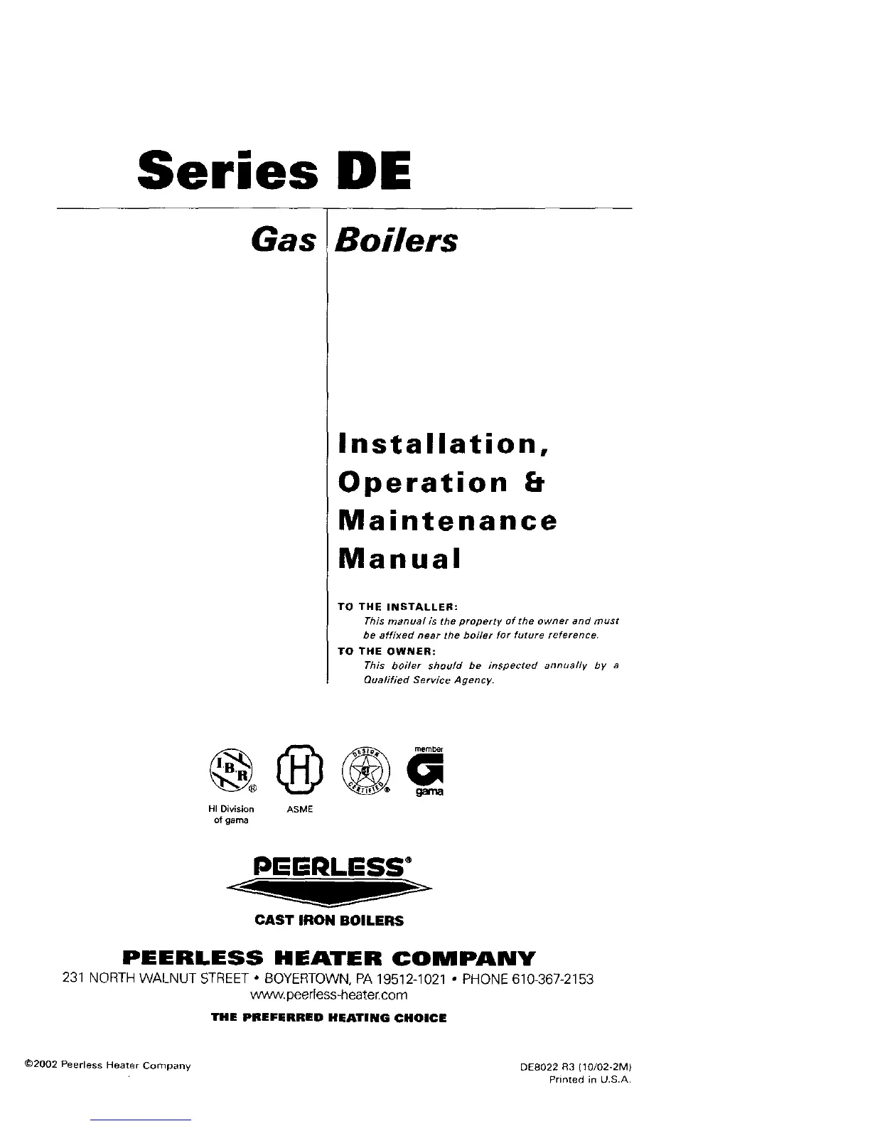 ©2002 Peerless Heater Company DE8022 R3 (10/02-2M)