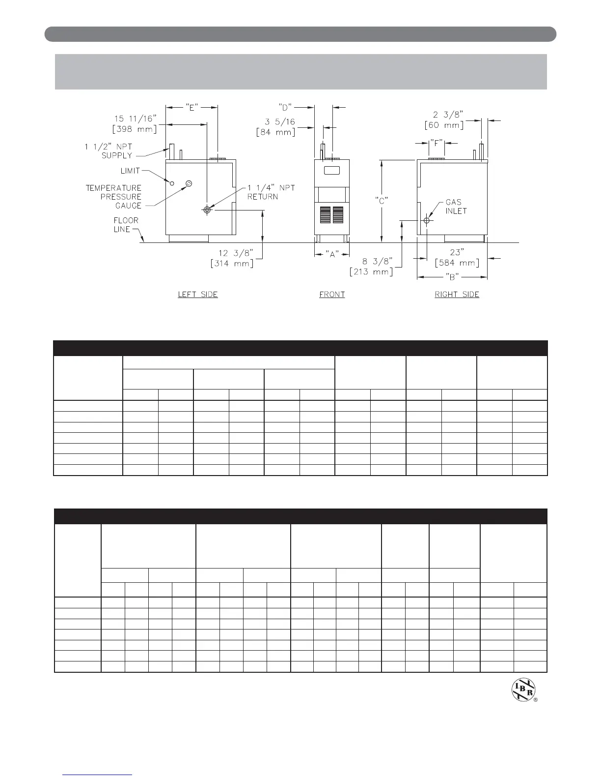 BOILER DIMENSIONS & RATINGS