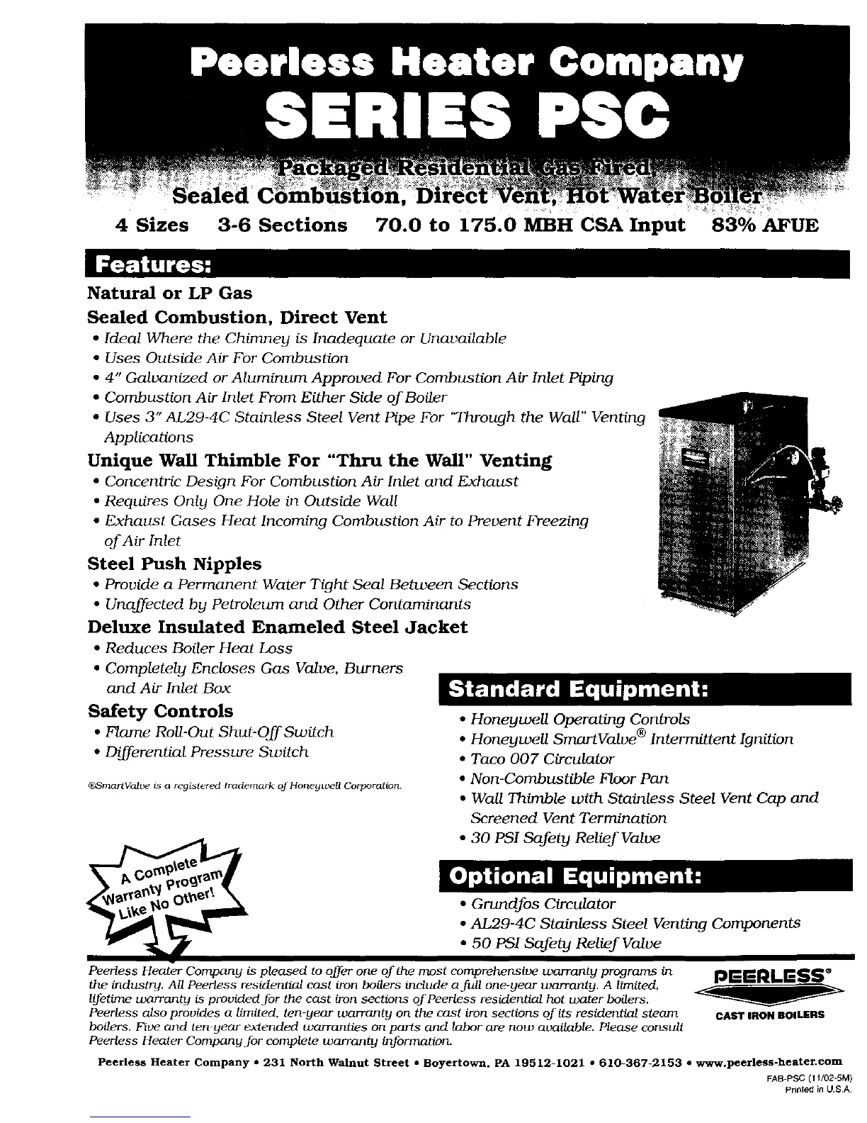 the industry. All Peerless residential cast iron boilers include a full one-year warranty. A limited,