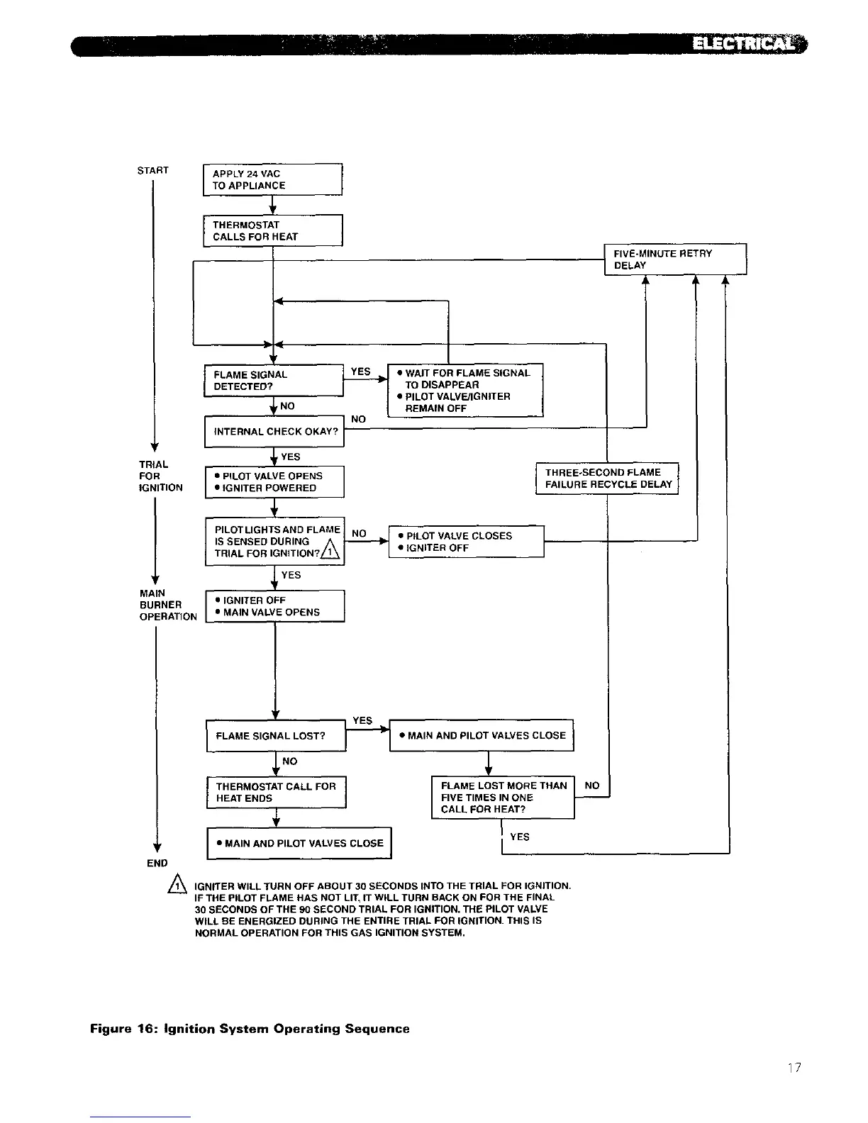 30 SECONDS OF THE 90 SECOND TRIAL FOR IGNITION. THE PILOT VALVE