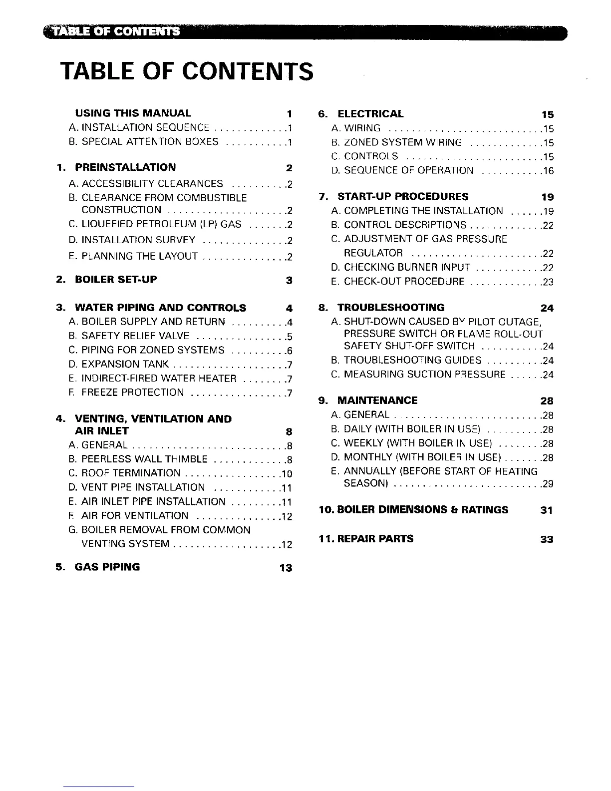 10. BOILER DIMENSIONS 8 RATINGS 31