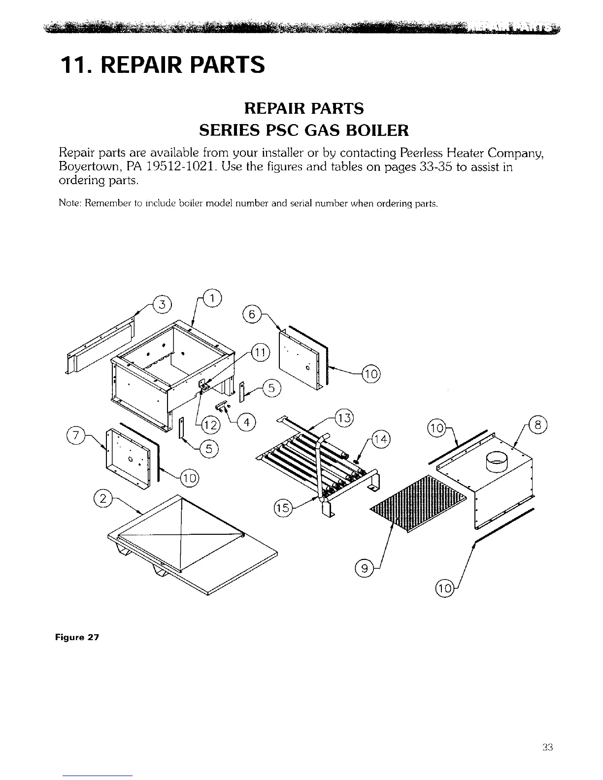 PEERLESS SERIES PSC - 10 Boiler Dimensions 8 Ratings 31; 11 Repair Parts